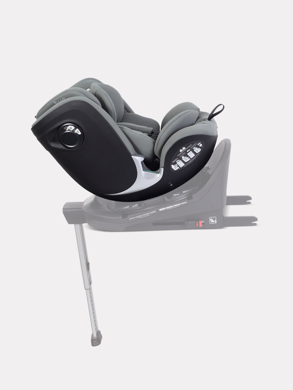 - в пару к автокреслу приобретается поворотно-выдвижная база isofix с телескопической опорной ногой, увеличивающей устойчивость. Вращение базы (360°) обеспечивает максимально комфортную установку автокресла (по ходу/против хода) и легкий доступ к ребенку (если развернуть ребенка лицом к двери). Также база дополнена выдвижной системой для еще более быстрого и удобного доступа к ребенку (автокресло можно выдвигать при повороте на 90°).