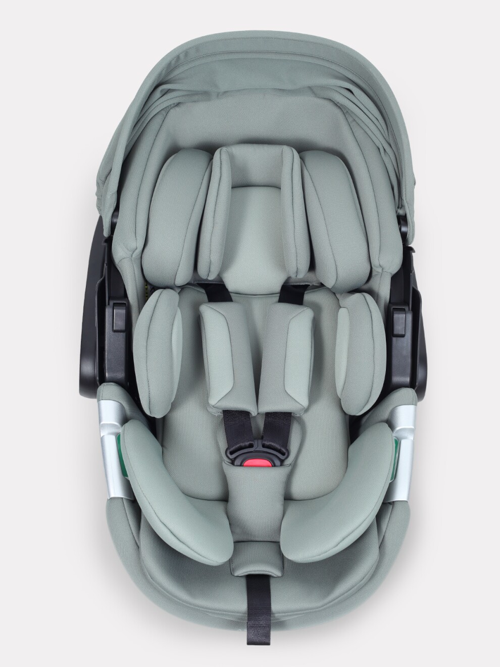 - 3-точечные ремни обеспечат полную безопасность, а плечевые накладки не дадут выскользнуть малышу при ударе