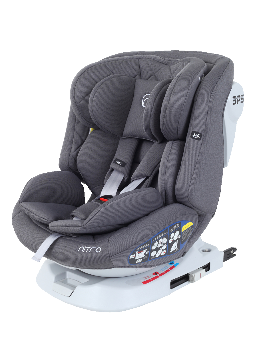 Детское автокресло RANT NITRO 0/1/2/3 покорит вас: инновационной поворотной базой; креплением ISOFIX; якорным ремнем Top Tether; всеми регулировками, соответствующими группе; 5-точечным ремнем безопасности; мягкими вкладышами для комфорта; подушкой для выравнивания спального места для младенцев; роскошным стеганым чехлом из премиальных тканей.