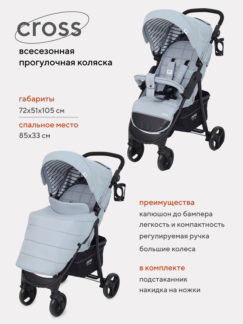 Коляска прогулочная Mowbaby Cross
