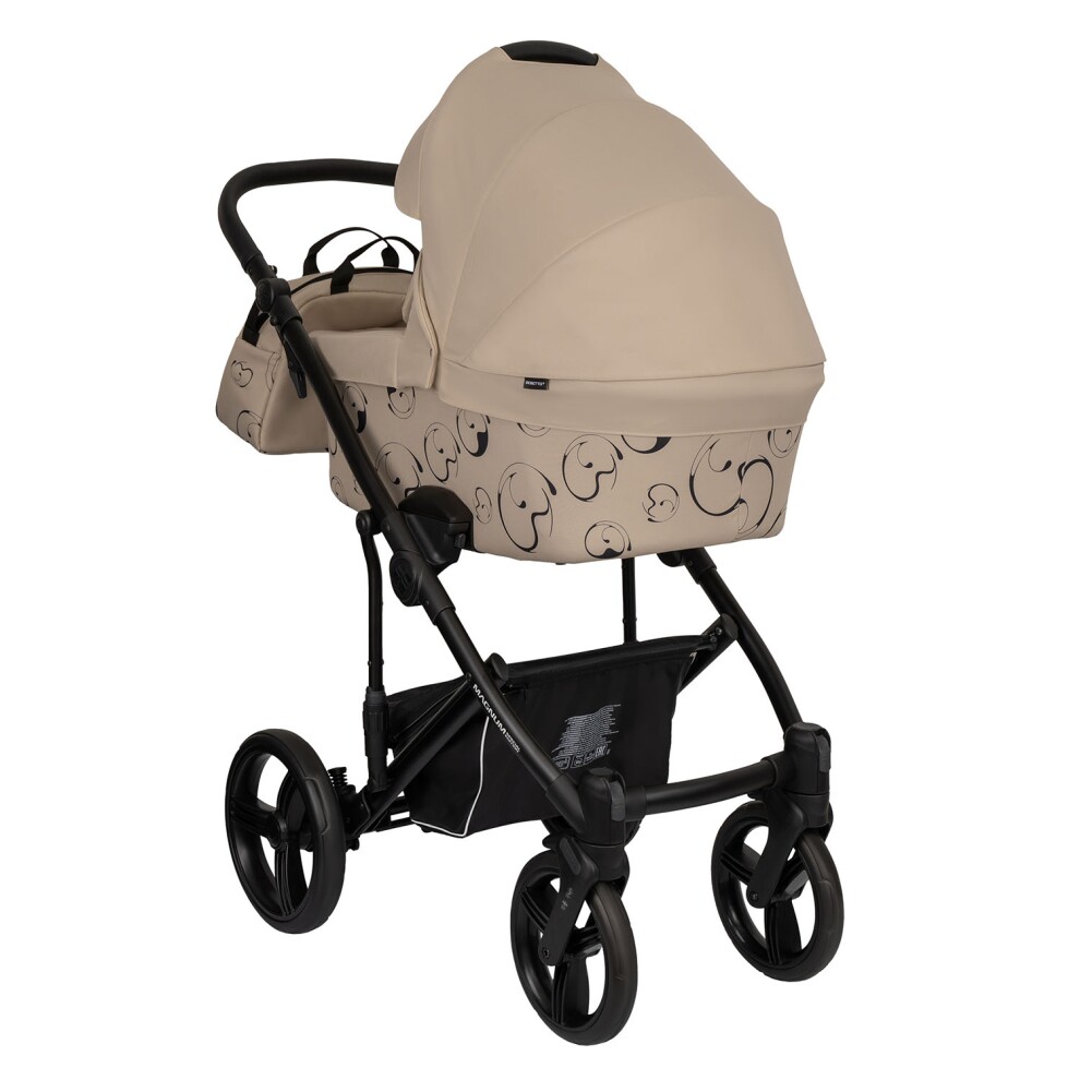 Дизайн модели отличается утончённой эстетикой и функциональностью. Особое внимание привлекает оригинальный принт на люльке, который придаёт коляске неповторимый характер и выделяет её среди других моделей.