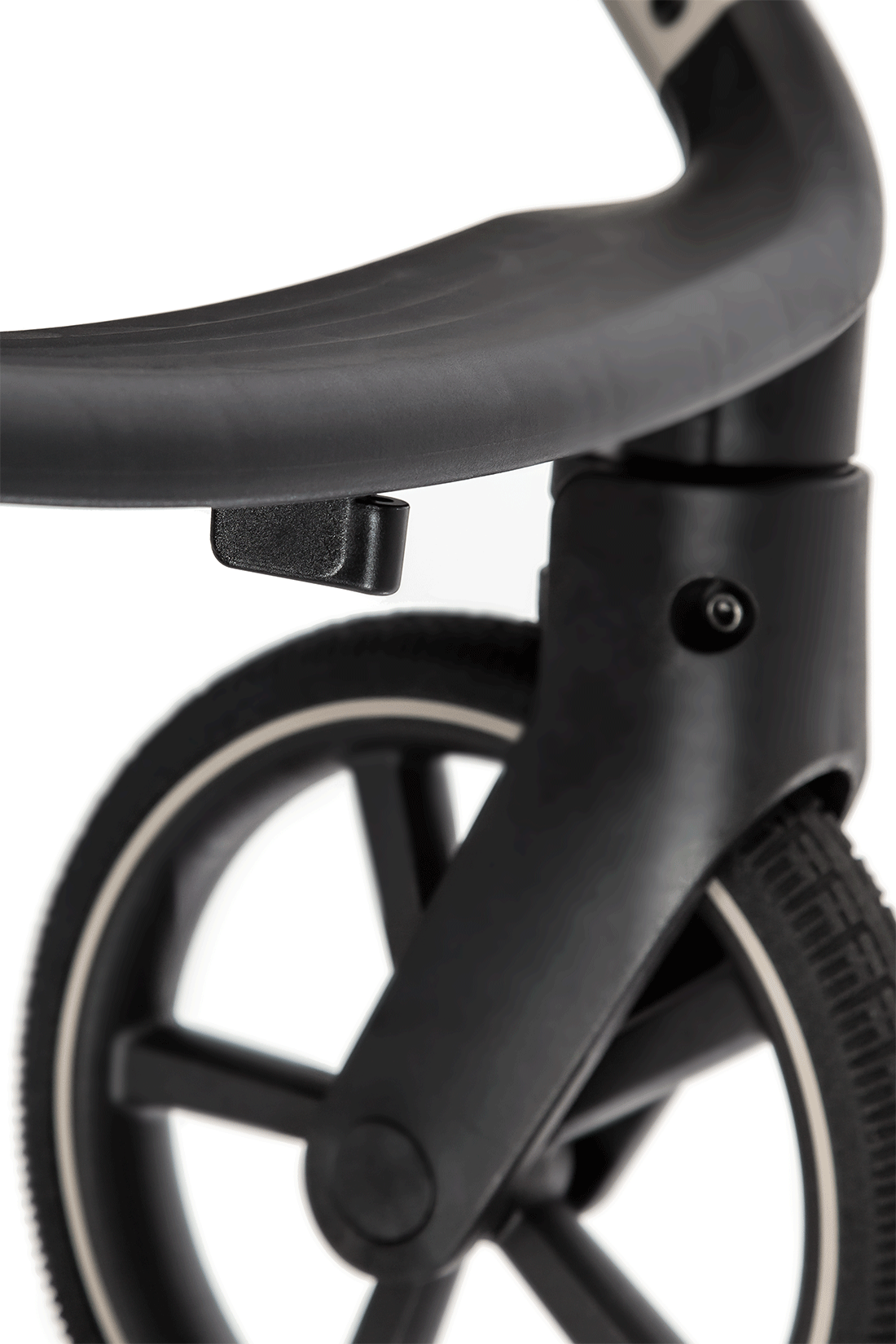 • Передние колёса с автоматической стабилизацией, поворотные на 360°, фиксируются в положении «прямо» при помощи удобного переключателя под подножкой.