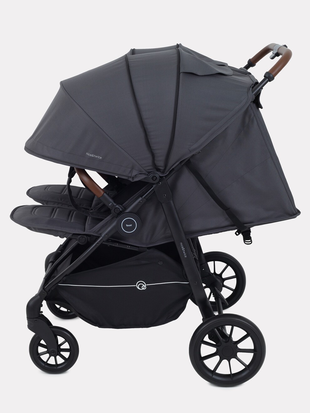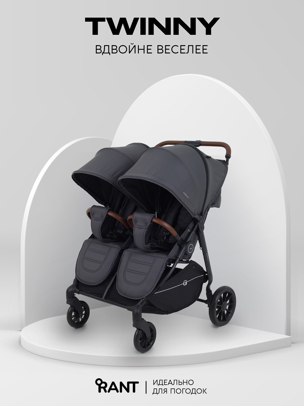 Детская прогулочная коляска для двойни и погодок RANT TWINNY - двойной подход к комфорту и безопасности! Стильная модель обладает всем необходимым функционалом и при этом не выглядит массивно. А главное, быстро и легко складывается одной рукой, что очень удобно для путешествий и загородных прогулок.