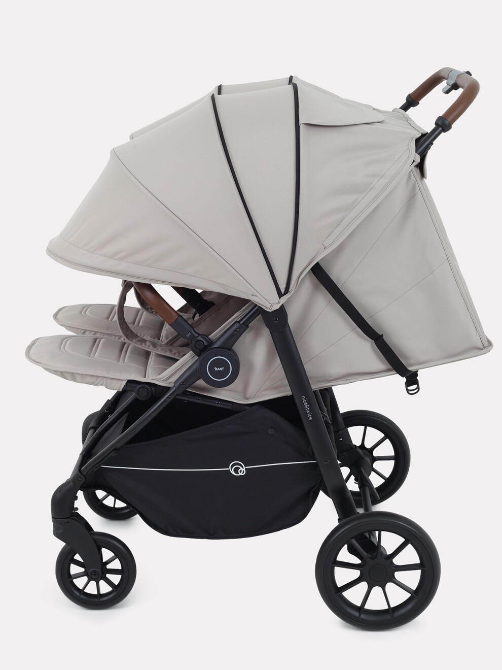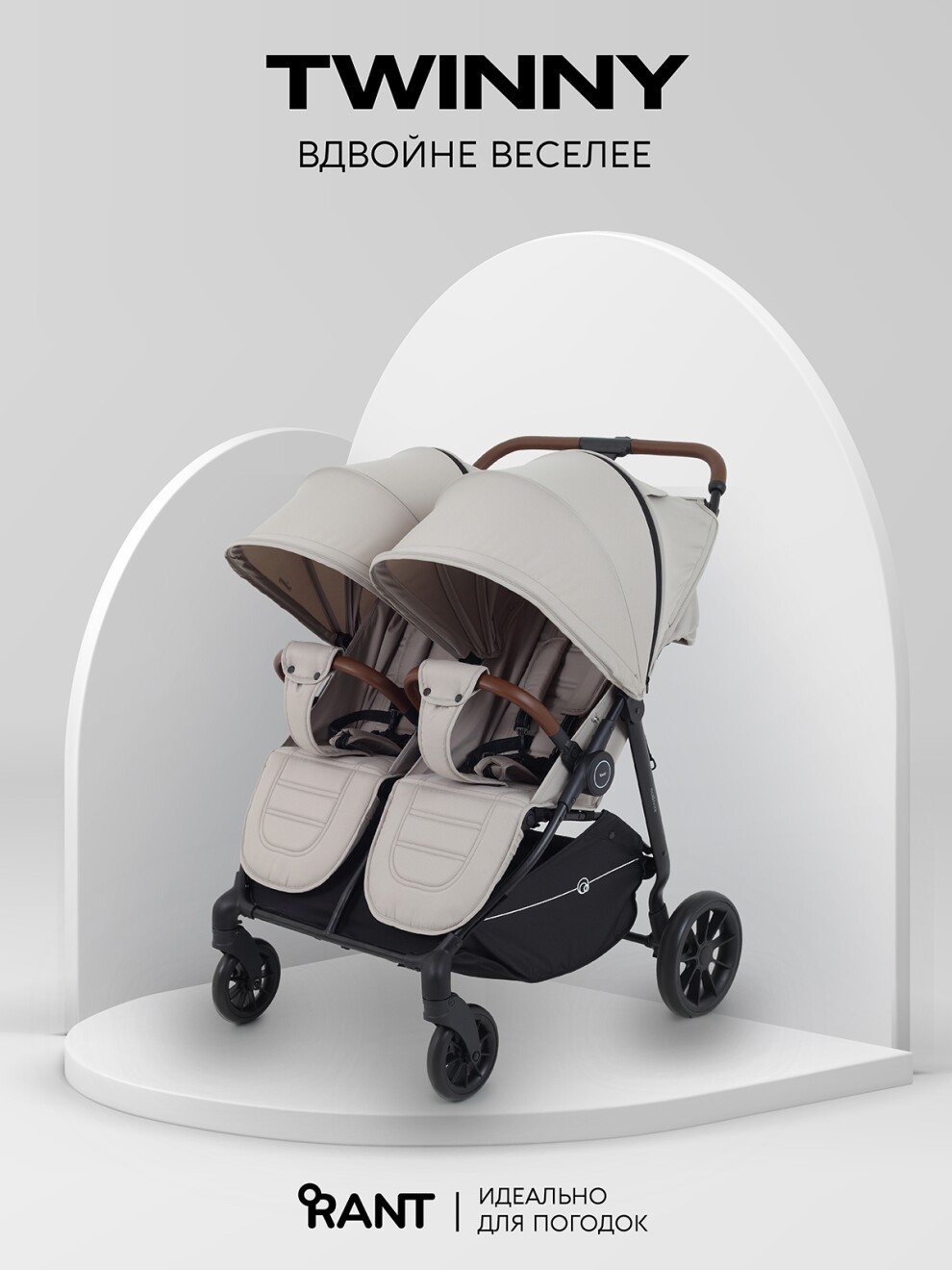 Детская прогулочная коляска для двойни и погодок RANT TWINNY - двойной подход к комфорту и безопасности! Стильная модель обладает всем необходимым функционалом и при этом не выглядит массивно. А главное, быстро и легко складывается одной рукой, что очень удобно для путешествий и загородных прогулок.