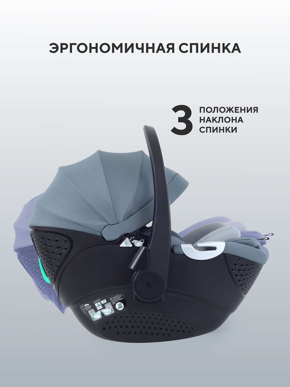 - 3 положения наклона эргономичной спинки (раскладывается до горизонтального положения) обеспечивают максимальный комфорт и адаптируют автокресло под возраст и настроение крохи