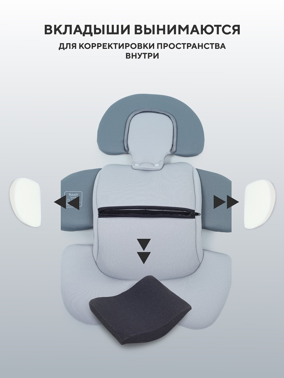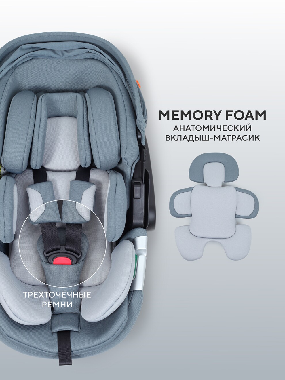 - анатомический вкладыш-матрасик Memory foam обеспечит не только комфорт, но и мягкую защиту, а также идеальное положение тела малыша на протяжении всей поездки. Вкладыши в матрасике (3 штуки) можно вынуть для корректировки пространства внутри, а также для стирки аксессуара.