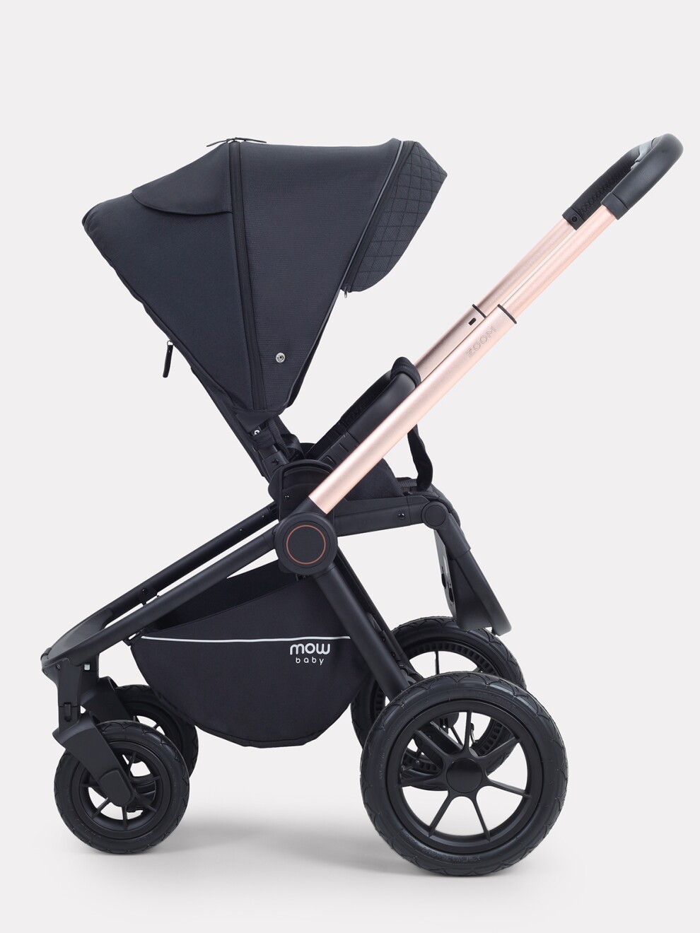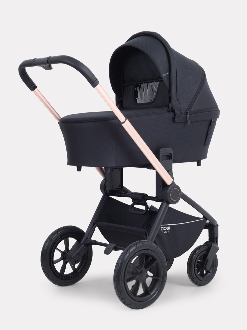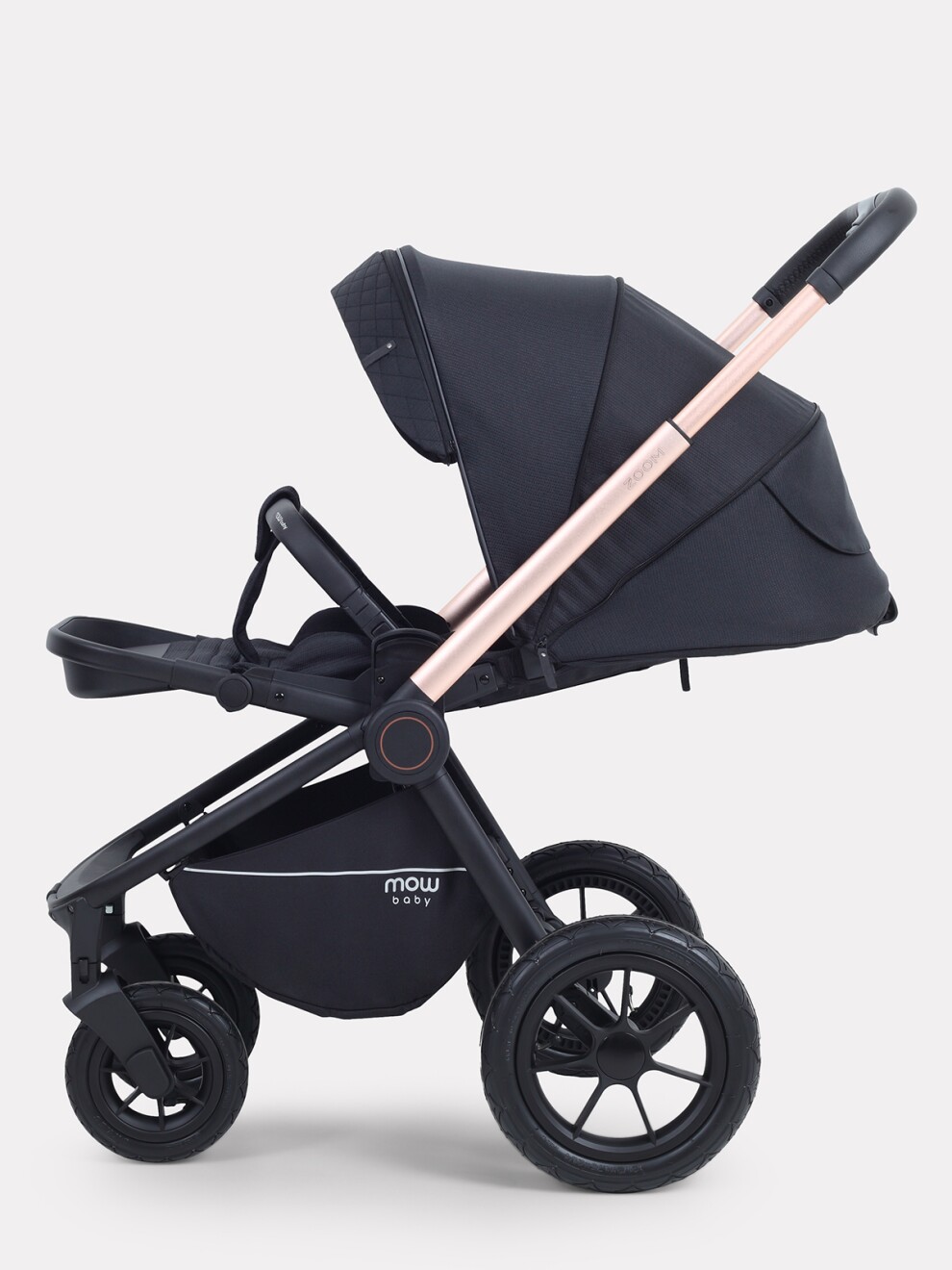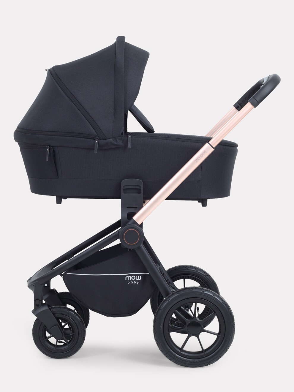 - коляска Mоwbaby складывается одной рукой вместе с прогулочным блоком. При этом блок может быть установлен в любом направлении.