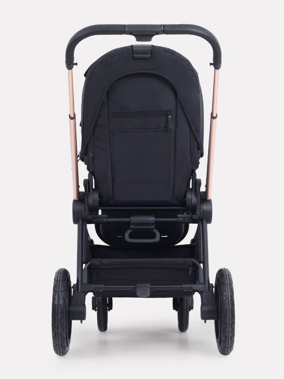 - шикарная комплектация: москитная сетка для обоих блоков; дождевик для обоих блоков; стильная сумка-рюкзак, которая крепится к коляске на карабины