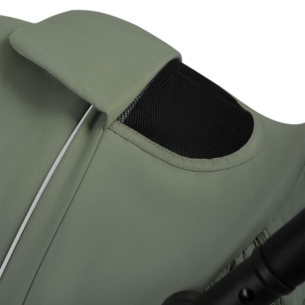 • Большой капюшон с козырьком защищает малыша от солнца, ветра и осадков.