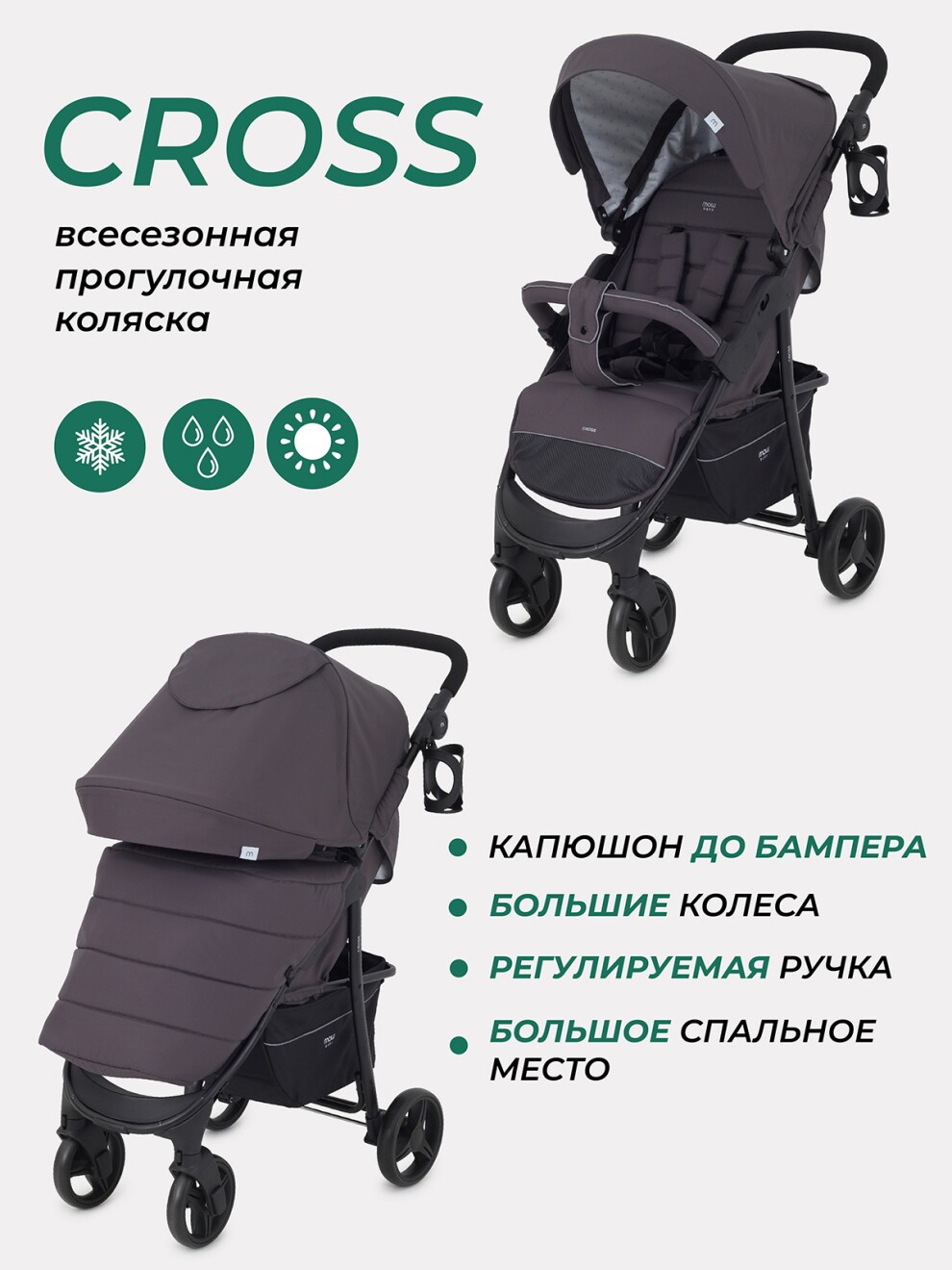 Коляска прогулочная Mowbaby Cross RA080 цвет Carbon 2024