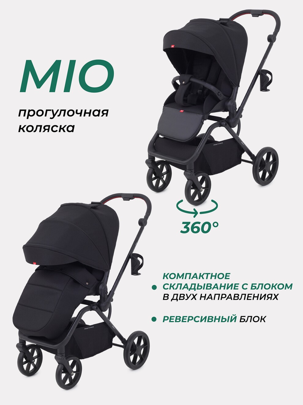 - коляска компактно складывается вместе с блоком (в двух направлениях)