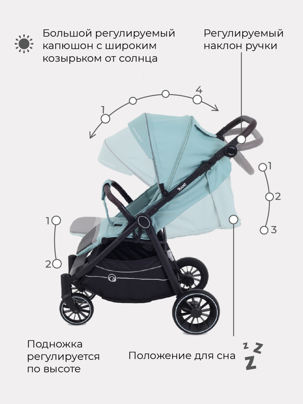 Регулировка капора прогулочного блока: 3 положения