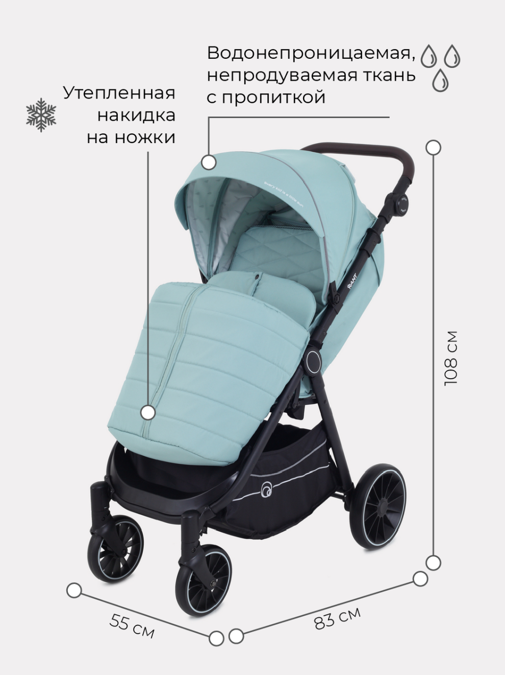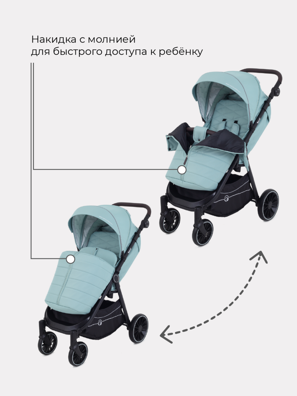 - накидка на ножки дополнена молнией по центру для быстрого доступа к ребенку