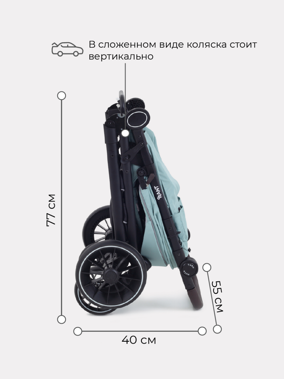 - в сложенном виде коляска стоит вертикально