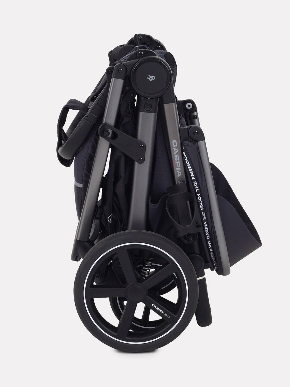 - сложенная коляска устойчиво стоит в вертикальном положении