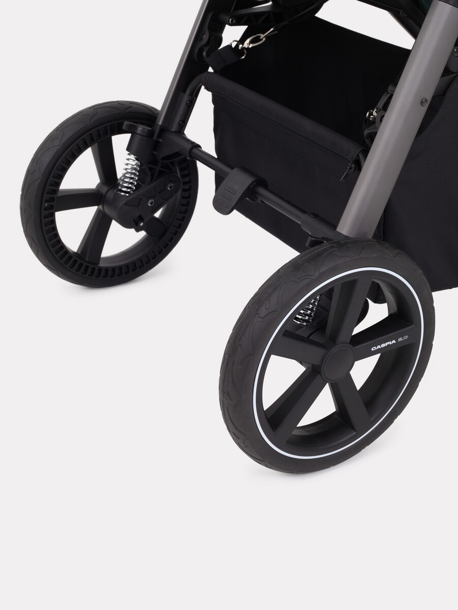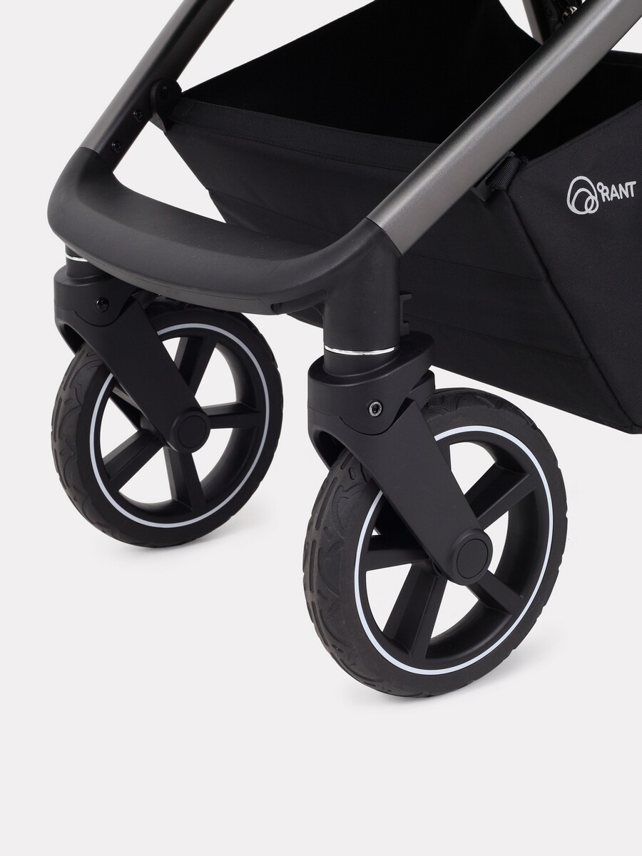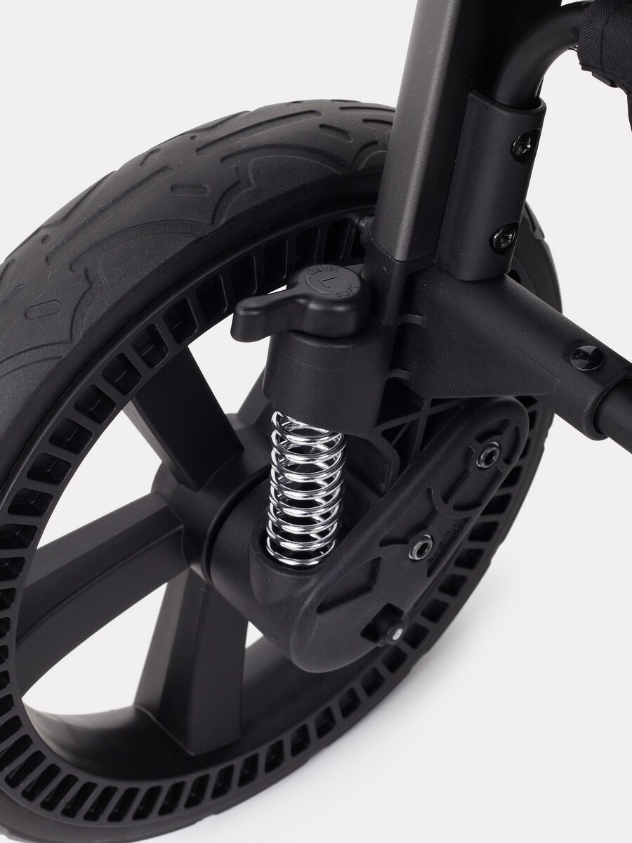 - главная инновация модели - бескамерные резиновые колеса, которые не требуют поддува. Благодаря им коляска легко преодолеет сложный ландшафт: сугробы, грязь, песок, гравий…