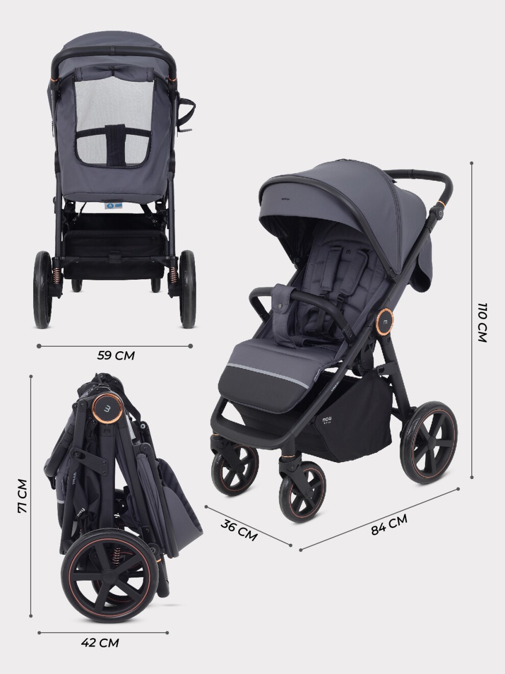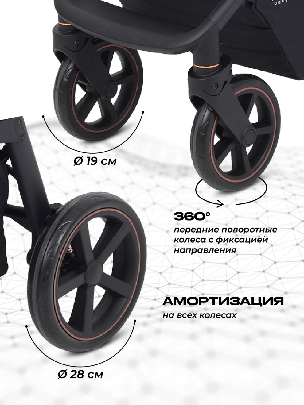 главная инновация модели - бескамерные резиновые колеса, которые не требуют поддува. Благодаря им коляска легко преодолеет сложный ландшафт: сугробы, грязь, песок, гравий…