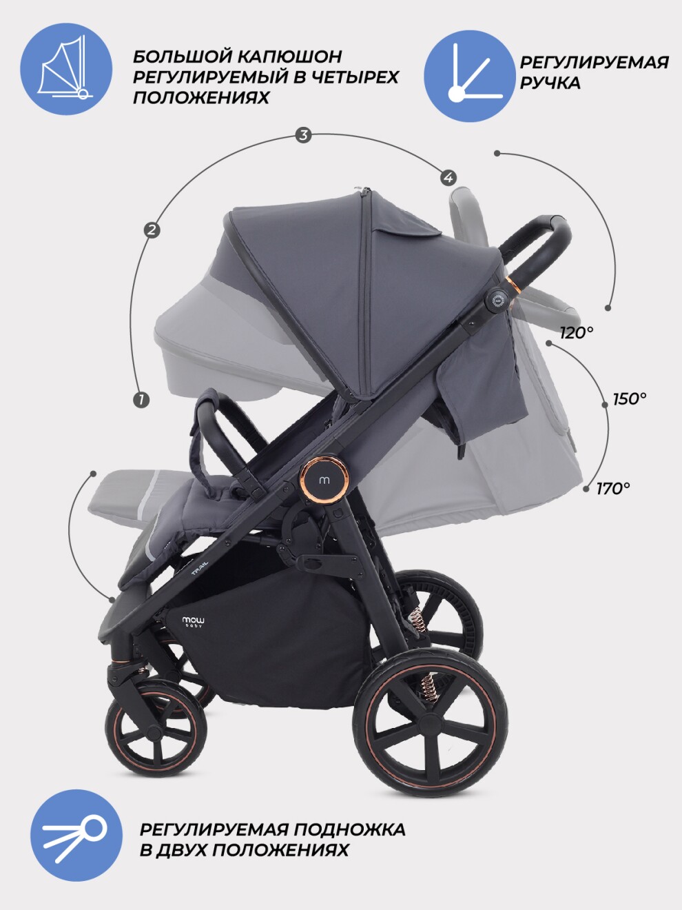 Идеальная модель как для лета, так и для зимы! Детская прогулочная коляска MOWBABY TRAIL покорит вас: мощными колесами, не требующими поддува, которые шутя справятся с проблемным ландшафтом; регулируемой пружинной амортизацией. К тому же сложенная коляска устойчиво стоит в вертикальном положении, что не даст ей испачкаться и обеспечит комфортное хранение.