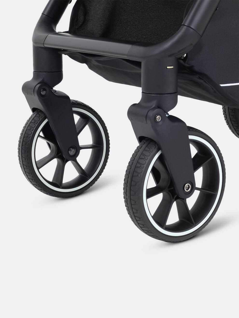 • сверхманевренность коляске дарят плавающие (на 360°) передние колеса