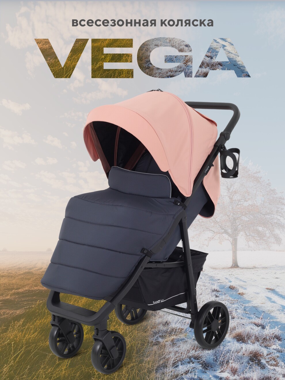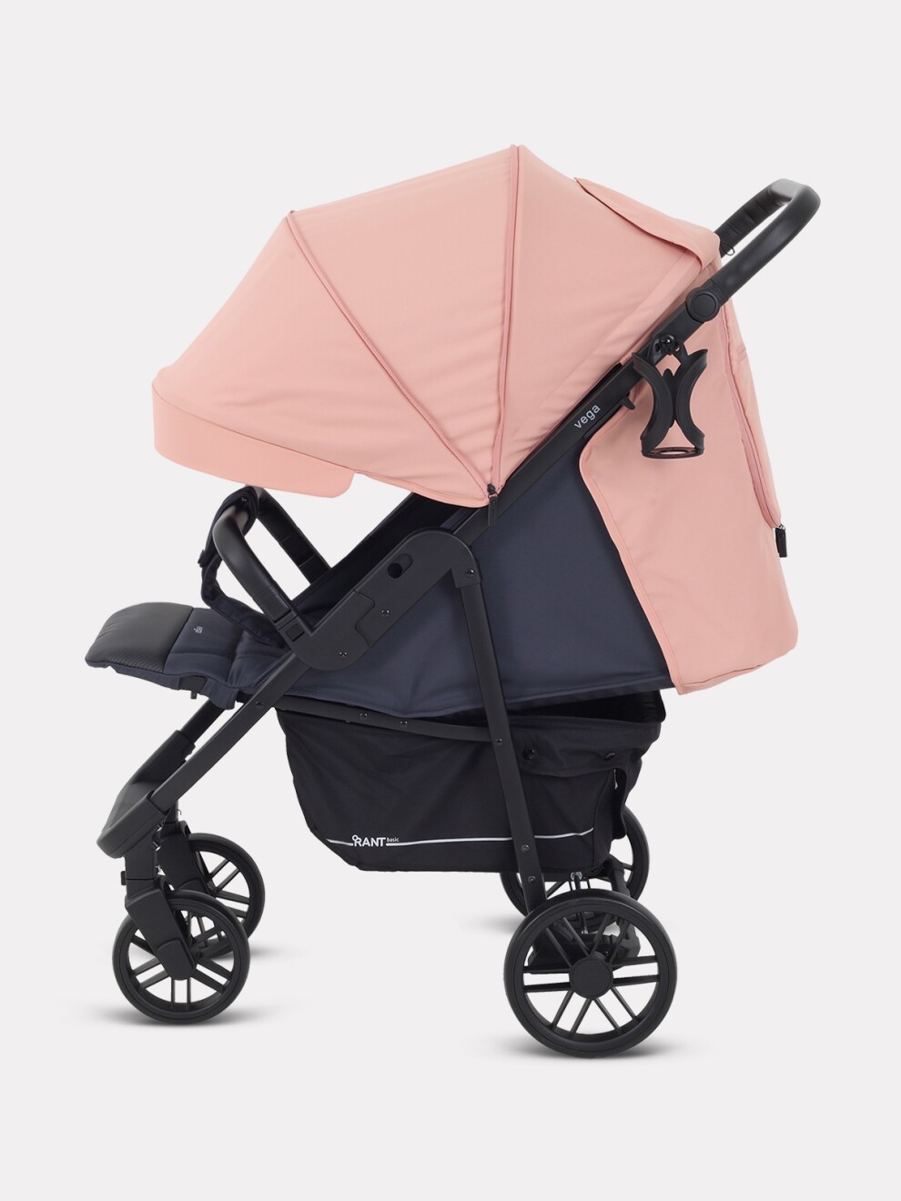 Трендовые цвета и внимание к деталям выгодно выделяют эту детскую прогулочную коляску. RANT BASIC VEGA покорит вас: вместительной корзиной; подножкой, обшитой экокожей (теперь чехол, который испачкают детские ботиночки, достаточно протереть); множеством регулировок (капюшон, спинка, подножка, ручка).