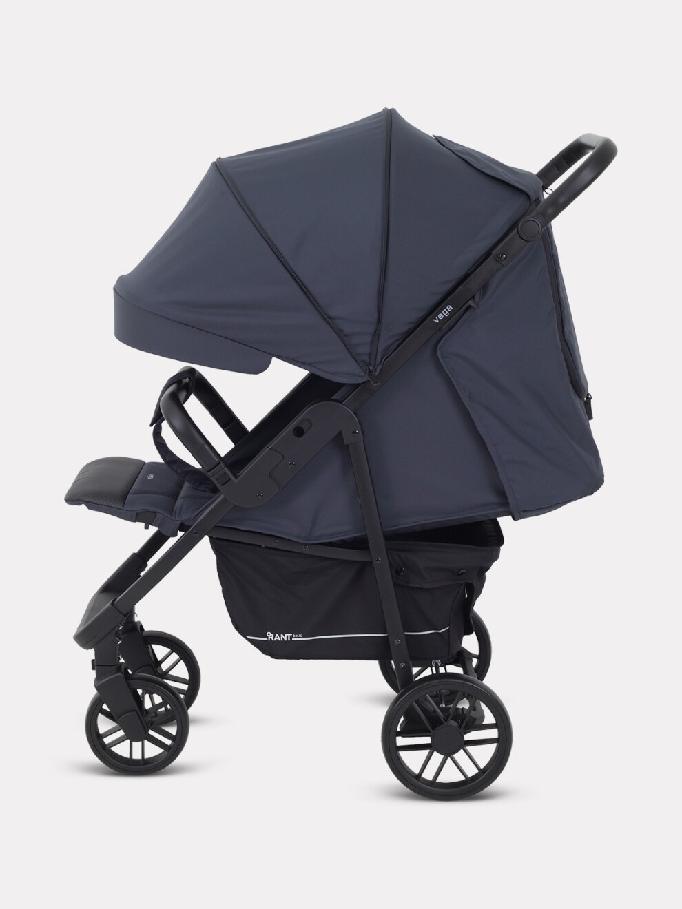 Трендовые цвета и внимание к деталям выгодно выделяют эту детскую прогулочную коляску. RANT BASIC VEGA покорит вас: вместительной корзиной; подножкой, обшитой экокожей (теперь чехол, который испачкают детские ботиночки, достаточно протереть); множеством регулировок (капюшон, спинка, подножка, ручка).