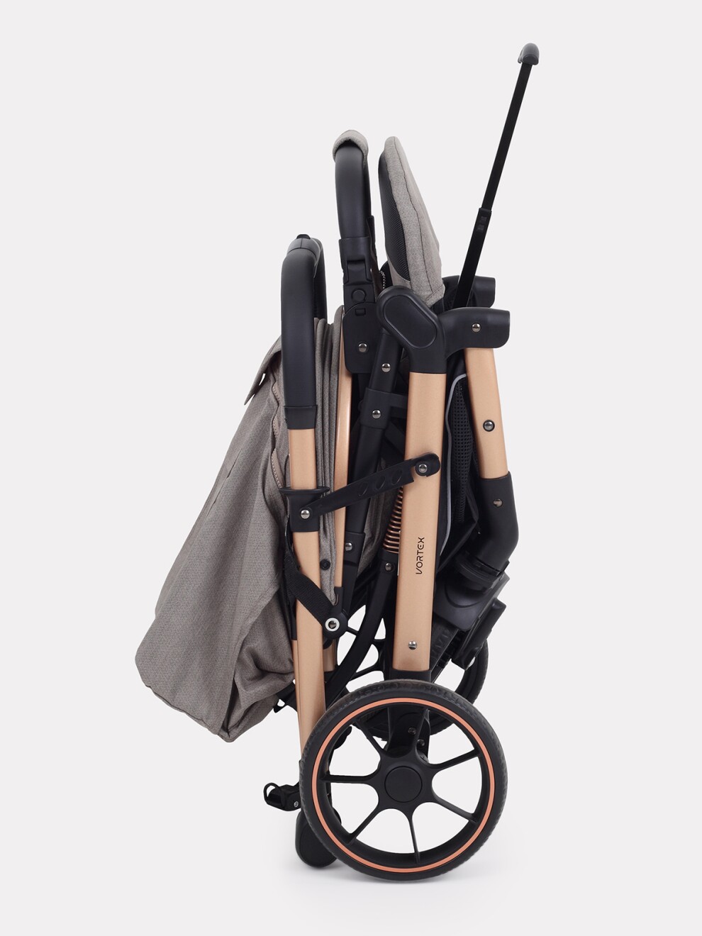 • в сложенном виде коляска устойчиво стоит в вертикальном положении