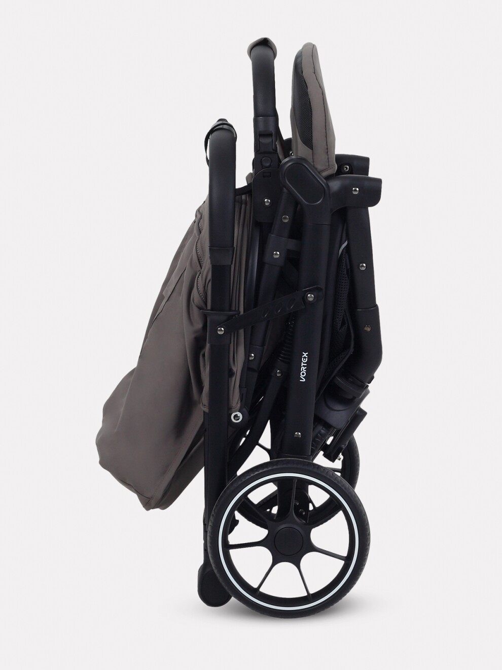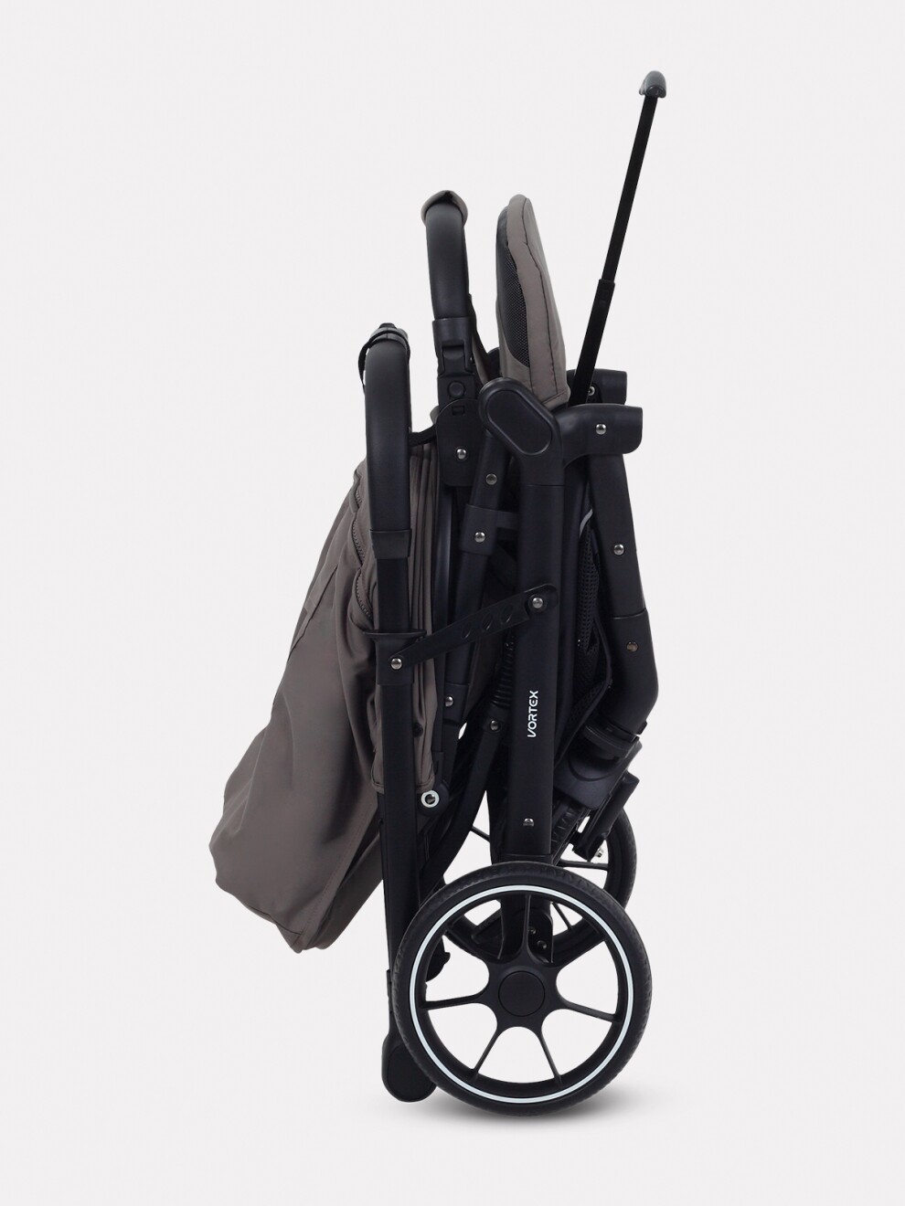 • в сложенном виде коляска устойчиво стоит в вертикальном положении