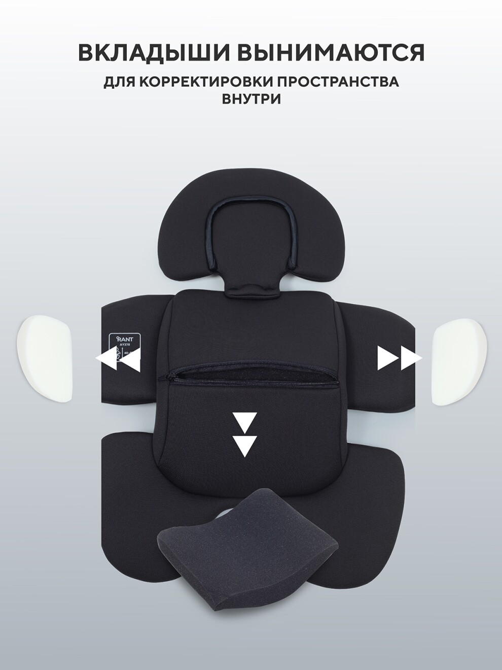 • вкладыш под спинкой (на молнии, черного цвета) предусмотрен для новорожденных, чтобы выровнять поверхность и обеспечить правильное положение позвоночника. Подобный вкладыш сводит к минимуму риск неправильного наклона головы ребенка, что может грозить затруднением дыхания. Вкладыш можно вынуть, когда рост малыша превысит 60 см.
