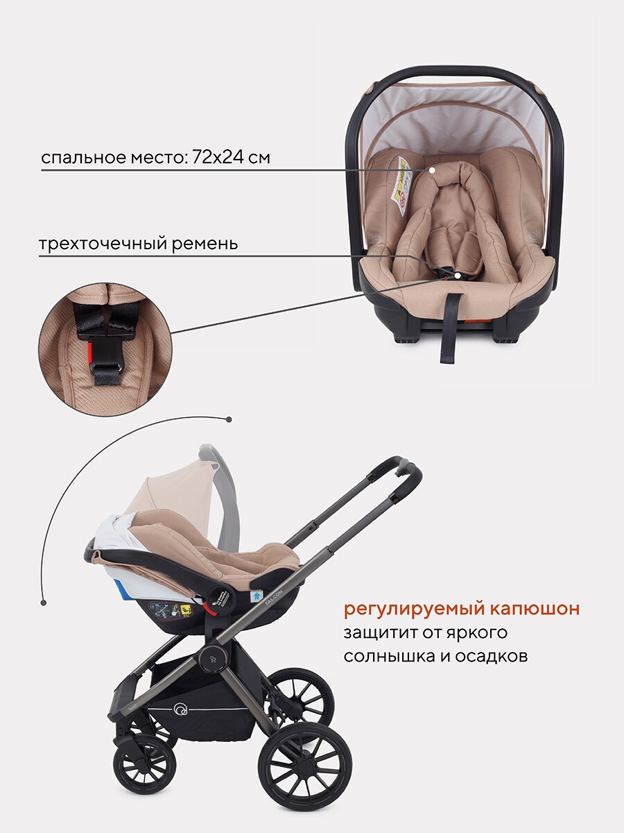 • от яркого солнышка, ветра, небольших осадков и любопытных взглядов кроху закроет съемный капюшон