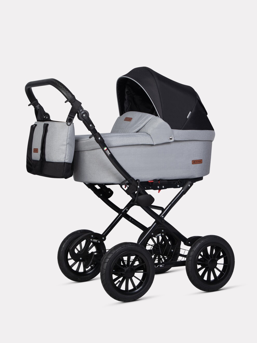 Коляска RIKO BASIC BELLA LUX CLASSIC 2 в 1 (Рико бейсик белла люкс классик) - стильная коляска на классической раме с большими надувными колесами. Такая коляска не только смотрится стильно и интересно, но и покорит вас своими ходовыми качествами. 4 больших надувных колеса в сочетании с классической рамой преодолеют любые препятствия на своем пути. Вы сможете гулять в лесу, в парке, по снегу и песку и не переживать за комфорт ребенка. Ручка регулируется по высоте, что позволит удобно управлять коляской.
