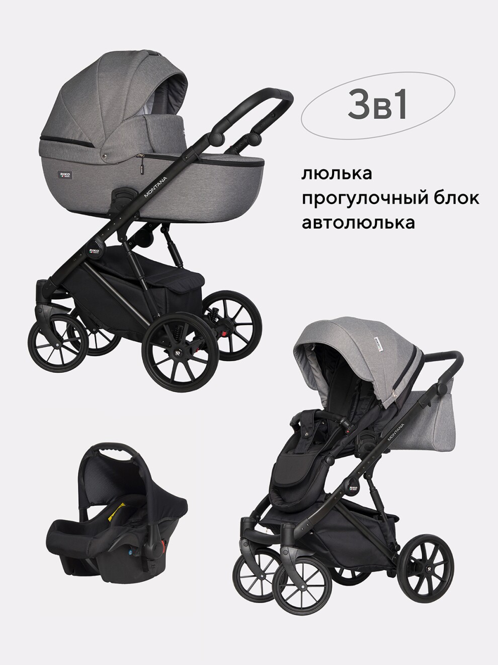 Коляска Riko Basic Montana 3 в 1 цвет 04 графит