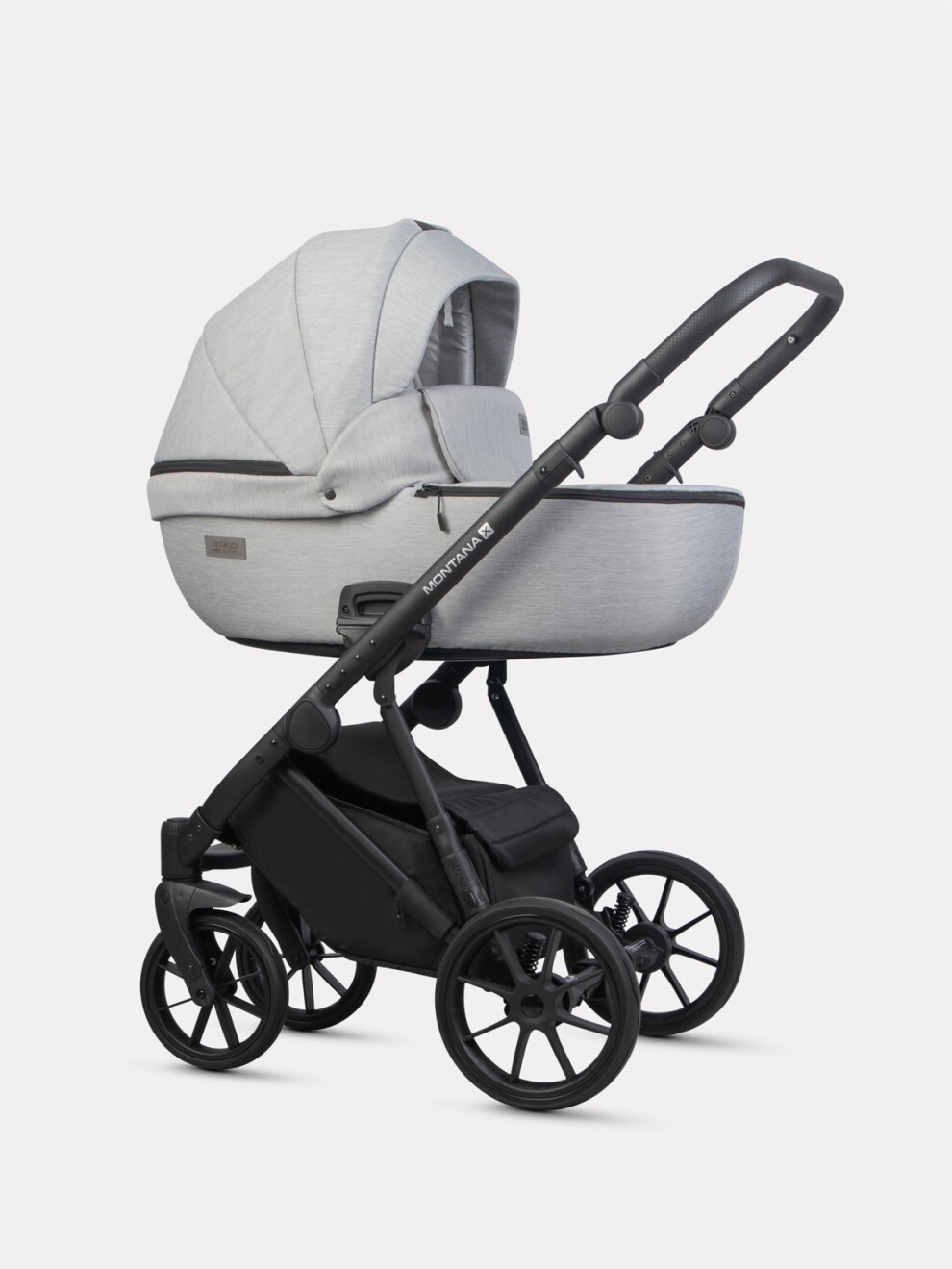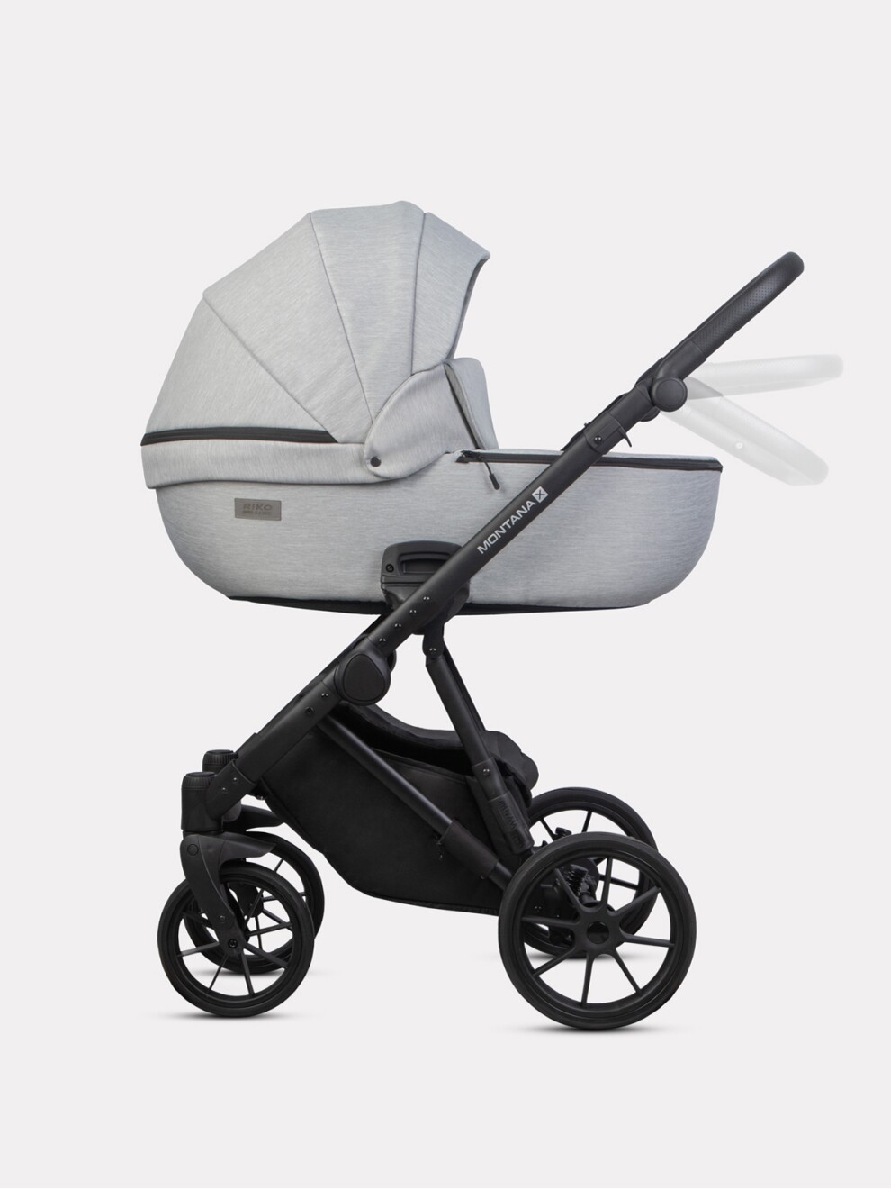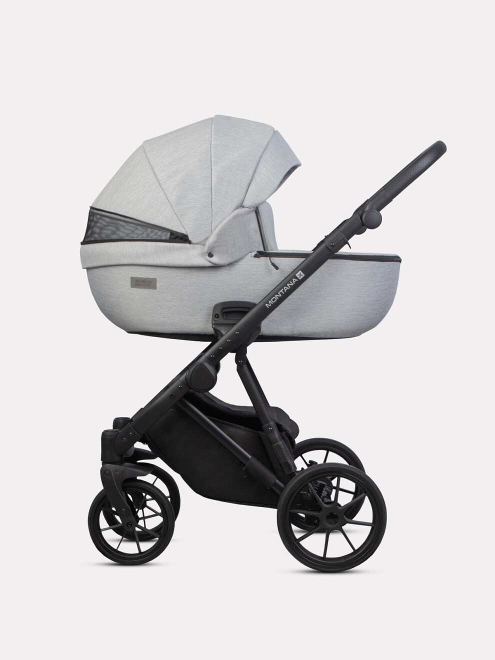 Обновленный дизайн топовой детской коляски 3 в 1 добавил модели актуальности и сделал ее еще комфортней и безопасней. RIKO BASIC MONTANA X покорит вас: новой архитектурой прогулочного блока; быстросъемными блоками с эффектом памяти; спинкой люльки, регулируемой с внешней стороны блока; регулируемой вентиляцией в дне люльки; мягкой регулируемой амортизацией; системой антишок на передних колесах; регулировкой капюшона с одной кнопки.