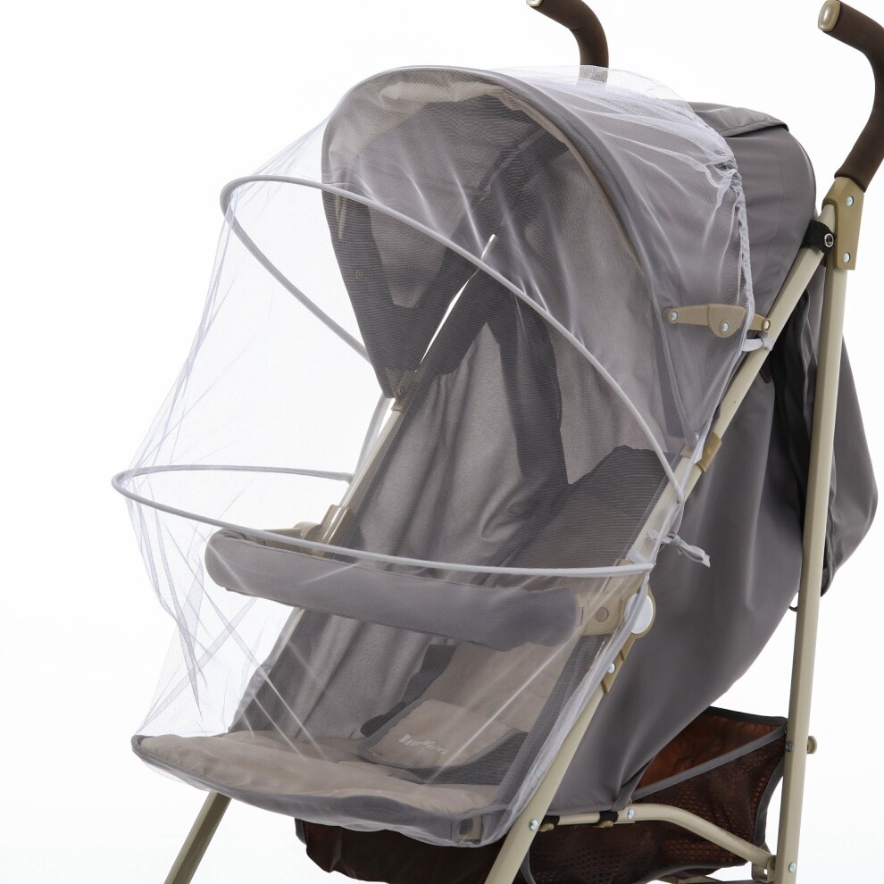 Москитная сетка имеет универсальный размер, ее можно надеть на прогулочную коляску, коляску-люльку и даже автокресло.